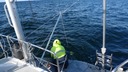 Fra tanktoppen i forpiggen kan man ved å løfte inn baugthrusteren få en brønn rett ned i sjøen.